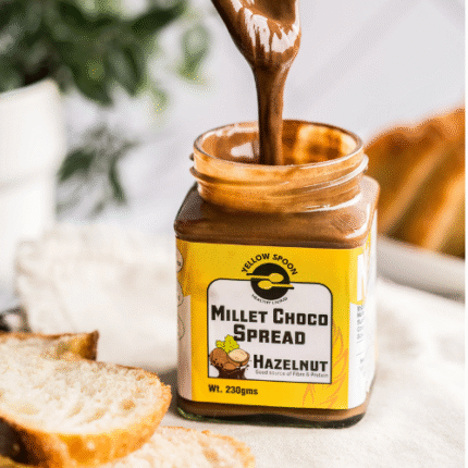 Yellow Spoon’s Millet Choco Spread | Peanut is your perfect balance of nutrition and indulgence. Made from roasted peanuts, wholesome finger millet, and decadent cocoa, this spread is naturally sweetened and crafted without palm oil or artificial additives. Its velvety texture and nutty chocolate flavor make it an all-time favorite—whether you’re spreading it on toast, drizzling over pancakes, layering in parathas, or enjoying it straight from the jar. Packed with plant-based protein, fiber, and essential minerals, it’s a guilt-free treat for any time of day.